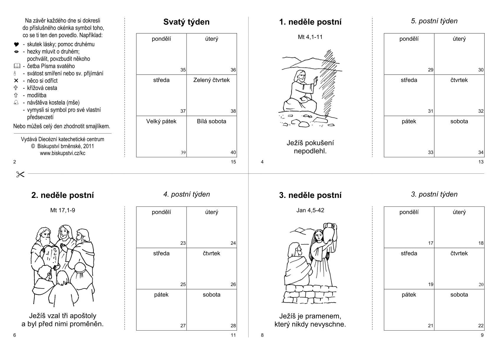 Postní deníček pro děti, kdy mohou postní dobu zaplnit dobrými skutky.