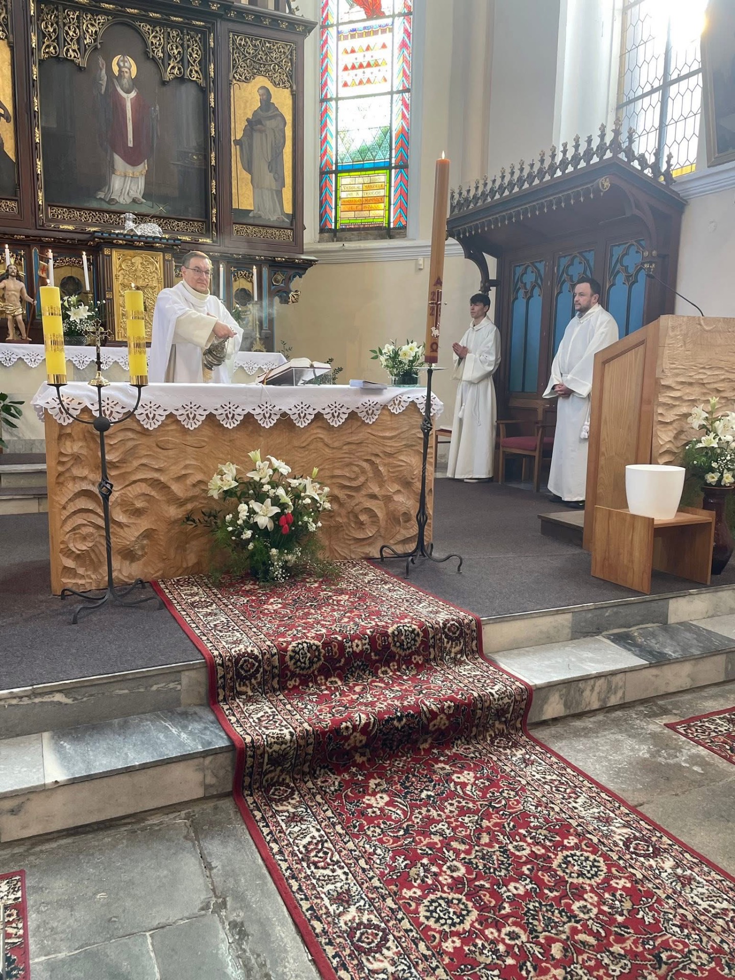 Aleluja, Pán vstal. Radujme se. Krásná a radostná vigilie ve farnim kostele sv. Mikuláše a agapé na faře.